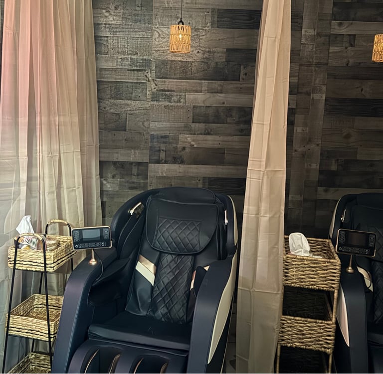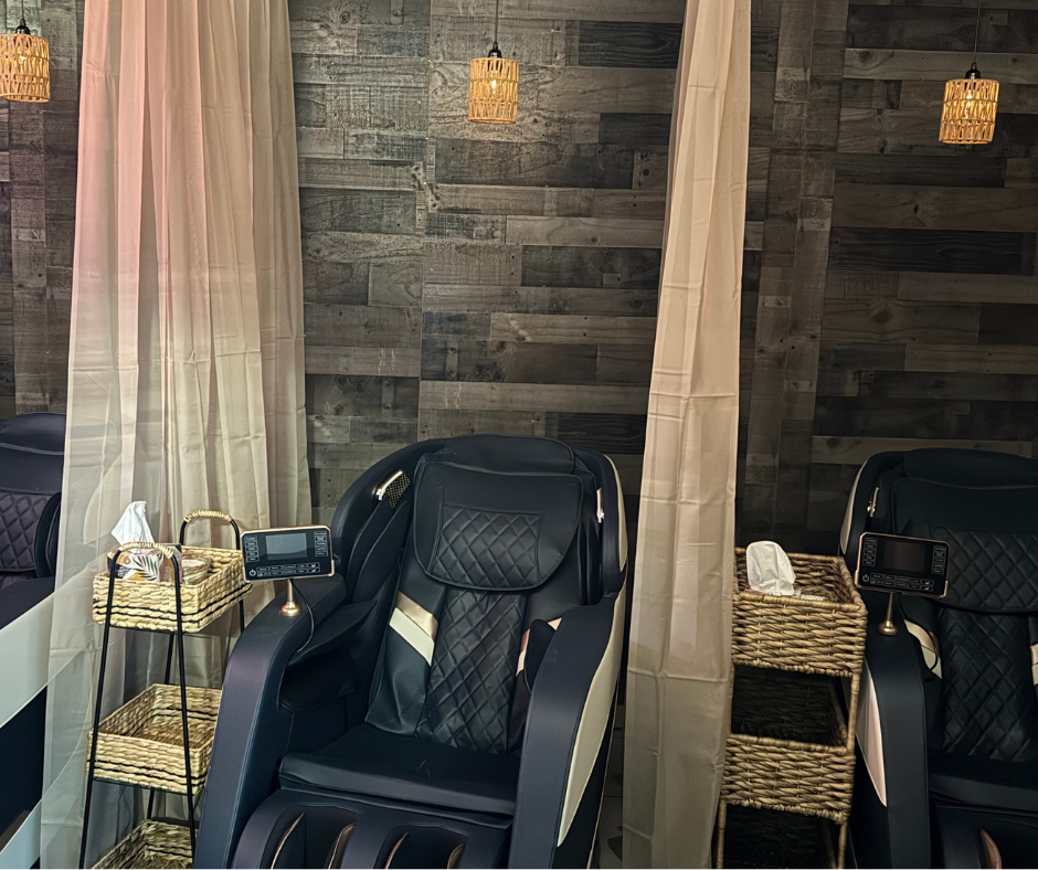 Whether you’re an athlete recovering from a tough workout or simply looking for a quick moment of pampering, our massage chairs are the perfect solution. Each chair is thoroughly sanitized after every session with eco-friendly, hospital-grade products.
